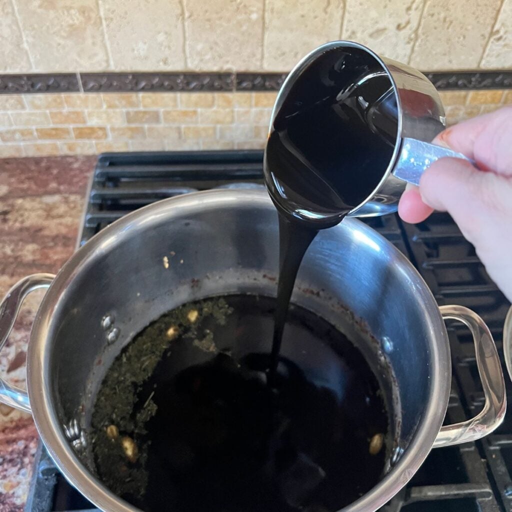 5. Stir in a generous spoonful of molasses until fully dissolved. Taste and adjust — a little more molasses will deepen the flavor and add to the mineral richness. Pour into your favorite mug and enjoy warm, or allow to cool and serve over ice.